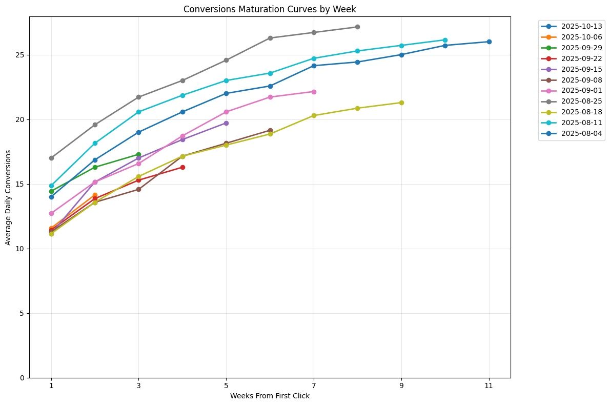 To solve this, advanced marketers use predictive conversion maturation modeling — leveraging historical data to estimate how conversions accumulate over time.